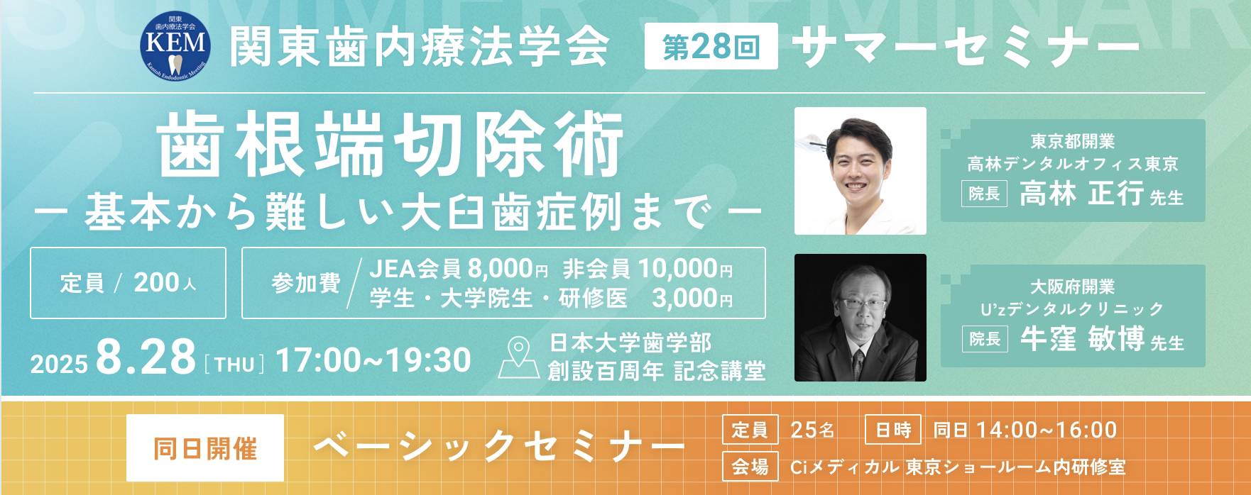 2025年8月28日に、日本大学歯学部創設百周年記念講堂にて関東歯内療法学会サマーセミナーが行われ、参加いたしました。