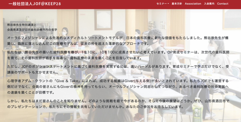 2026年3月28日(土)・29日(日)に、日吉歯科診療所(山形県酒田市)にてOP育成セミナー酒田交流会が開催され、理事として参加いたしました。